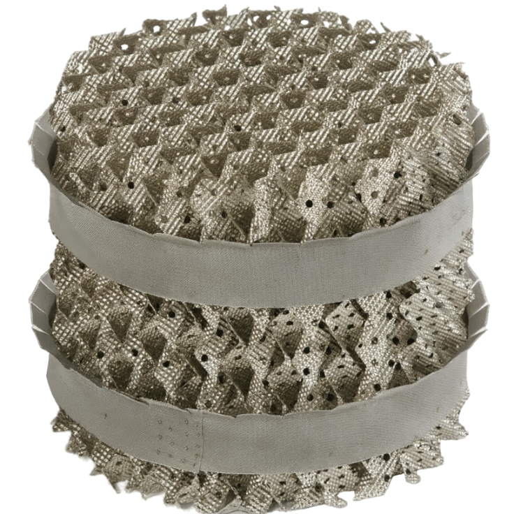 Специальная конструкция внутренних элементов позволяет увеличить пропускную способность колонны и/или уменьшить энергопотребление